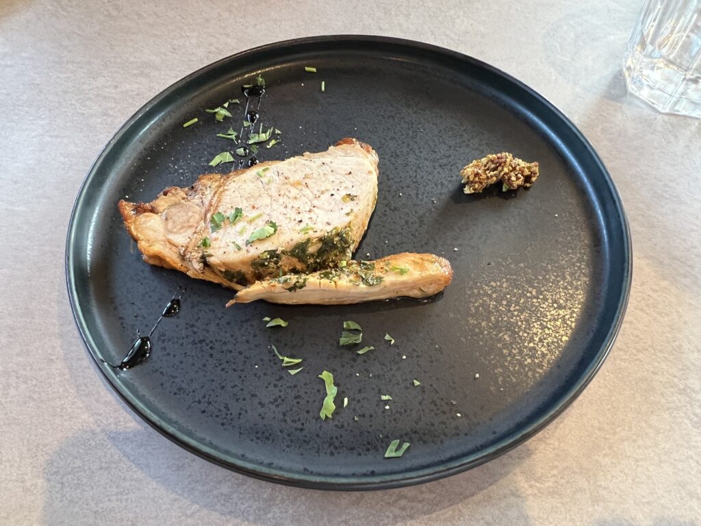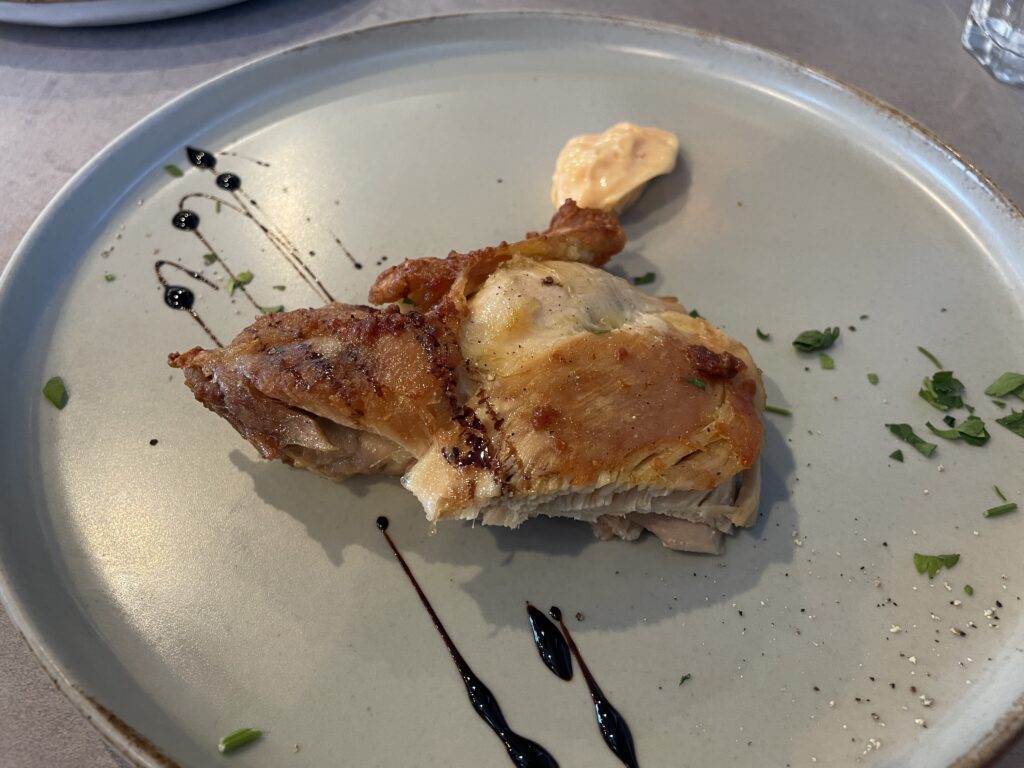 皮はパリッとジューシーに、しっかりと味付けされていました。バルサミコ酢のソースもしっかり甘みを感じて鶏肉と合いました。
