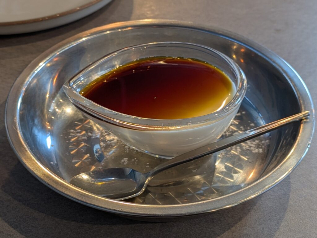 しっかり苦みのあるカラメルとともにいただく、なめらかなパンナコッタでした。小さくもなく大きくもない、ちょうどよい量でした。