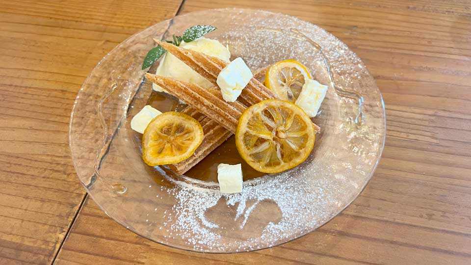 レモンシロップは程よい甘さと酸味でチュロスの味を邪魔せず、バランスがよかったです。