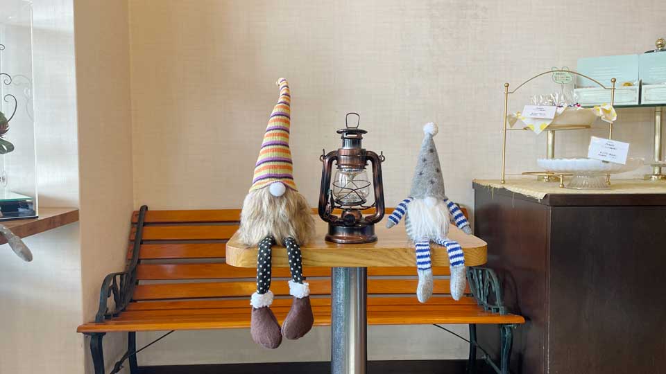 お店に入ってすぐ左側にかわいい小人たちが、ちょこんと座っていました。