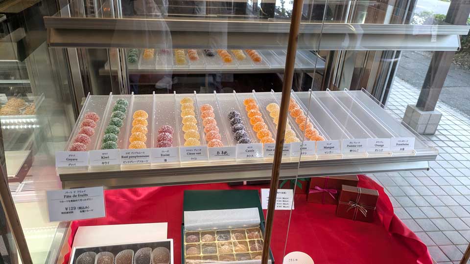 キラキラとしたフルーツのゼリーも並んでおり、とても色鮮やかです。