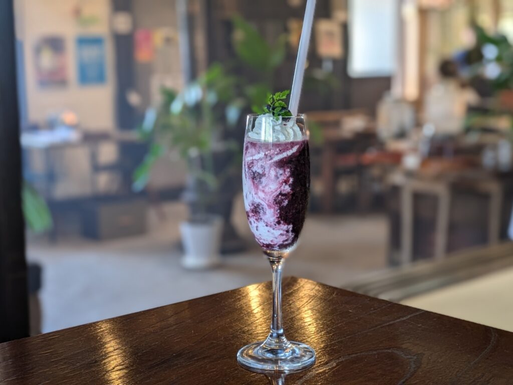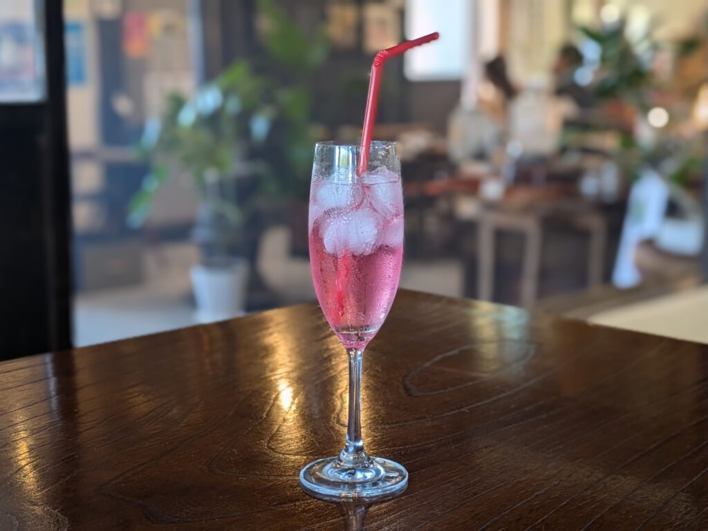 古民家華の幹で採れた梅と紫蘇を使ったサイダーです。自家製の赤色鮮やかなシロップが特徴。爽やかな酸味でさっぱり飲めたので、暑い日の喉の乾きにピッタリでした。